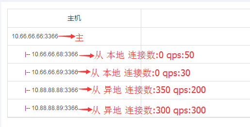 选目标实例,假如例子中的 4 个从都是存活的,那么根据先本地后异地原则,选出 10.66.66.68:3366,10.66.66.69:3366。