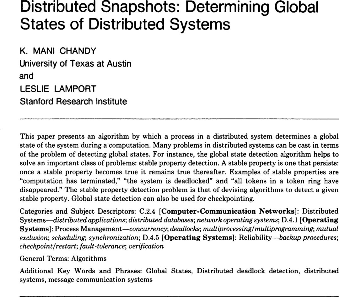 - 其高效的快照实现方式,源自 Chandy 和 Lamport 的原始论文《“Distributed Snapshots: Determining Global States of Distributed Systems”》的研究,这为其提供了正确性所需的强一致性保证。