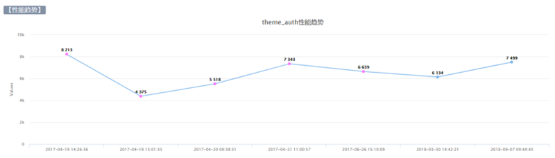 天机阁的压测系统导现网流量进行压测,不需要开发构造请求,仅需要点击个启动按钮,就能自动完成压测,并生成详细的压测报告。报告包括压测结果详情(图16),性能趋势图(图17),压测结果环比(图 18),以及其他的一些性能指标。