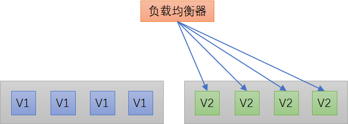 - V1 版本称为蓝组,V2 版本称为绿组,发布时通过 LB 一次性将流量从蓝组直接切换到绿组,不经过金丝雀和滚动发布,蓝绿发布由此得名;